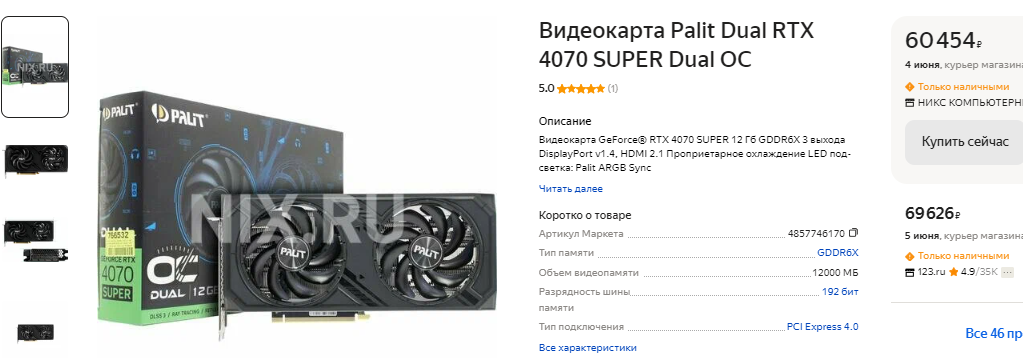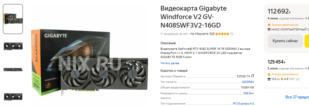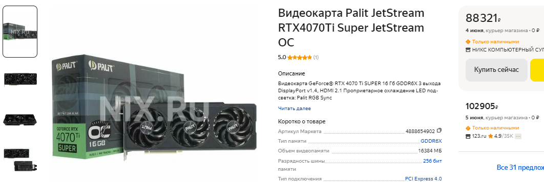 Немногим дешевле 90 тысяч рублей предлагается GeForce RTX 4070 Ti SUPER. Эта видеокарта обходит старый флагман NVIDIA и решает главную проблему, которая стояла на пути GeForce RTX 4070 SUPER. Напомним, GeForce RTX 3090 Ti имеет 24 Гб памяти, а значит будет лучше справляться с требовательными играми в 4К. Для данного разрешения 16 Гб пока достаточно, ну а именно столько имеет GeForce RTX 4070 Ti SUPER. По цене одной GeForce RTX 3090 Ti можно купить две GeForce RTX 4070 Ti SUPER, ну а последняя не только быстрее, но и лучше в плане энергоэффективности. Выбор очевиден. Для тех, кто решил потратить на видеокарту больше 100 тысяч рублей в наличии GeForce RTX 4080 SUPER. Здесь вы получите значительное преимущество в быстродействии, но всё равно сэкономите 70 тысяч рублей.