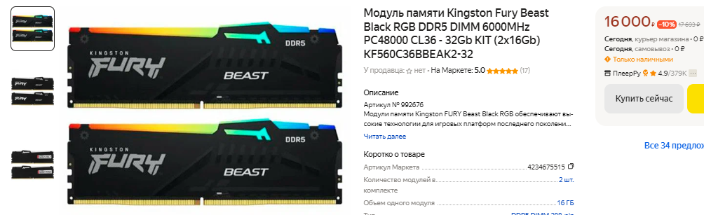 Скорее всего, даже через 5 лет не появится ни одной игры, в которой вам понадобится такое значительное количество оперативной памяти. Давайте взглянем на то, сколько линейки ОЗУ стоят в российской рознице, а после перейдём к ещё одному любопытному тесту. Прежде всего советуем вам присматриваться к платформе на базе DDR5. ОЗУ прошлого поколения уже не актуальна, ну а DDR5 послужит вам несколько поколений процессоров. Две линейки Kingston Fury Beast Black стоят 16 тысяч рублей и предлагают отличную скорость по разумной цене. Эксперты отмечают, что нужно ориентироваться на линейки, тактовая частота которых не ниже 6000 МГц. В этом случае можно получить прибавку по сравнению с оперативной памятью прошлого поколения. Неплохой вариант для игрового компьютера предлагает G.Skill. Вы сэкономите 2500 рублей, но получите те же 6000 МГц. Выбор за вами, а разница только в разгонном потенциале. На самом деле попытать счастья на оверклокерской ниве можно даже с недорогой ОЗУ, поскольку шансы часто зависят от удачи, хотя без необходимых навыков и усердия не обойтись. Если ваш компьютер не поддерживает оперативную память нового поколения, то можно обратить внимание на две линейки DDR4 Kingston FURY Beast Black. Цена здесь намного ниже, но подружить такую ОЗУ с новыми процессорами у вас не выйдет.