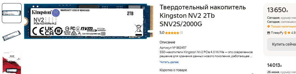 А вот сэкономить 5 тысяч рублей на покупке не самого быстрого твердотельного накопителя – это самый разумный выбор. В тестах брендовый Samsung за 20 тысяч окажется в 3 раза быстрее, но в реальных задачах Kingston NV2 будет ничем не хуже. Разработчики игр и приложений пока не научились использовать потенциал современных SSD, поэтому можно не тратить лишние деньги, если синтетические тесты для вас не имеют никакого значения. Мы поставили накопитель на 2 Тб, поскольку игры становятся всё больше, а кроме этого свободное пространство вам может понадобиться для хранения видео, фото и любой другой полезной информации.