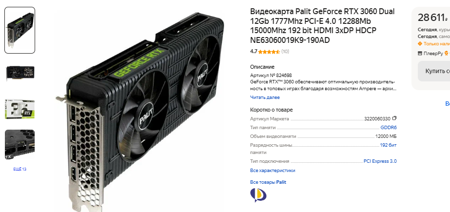 Долго думать над выбором видеокарты не пришлось, ведь даже сегодня GeForce RTX 3060 является оптимальным выбором. Стоит такая видеокарта дешевле 30 тысяч рублей, но может с лёгкостью обеспечить вам стабильные 60 кадров в секунду в любых играх с разрешением 1080р. На большее графические чипы данного ценового сегмента не способны. Если у вас есть 50 тысяч рублей на видеокарту, то в таком случае можно присмотреться к Radeon RX 7700 ХТ. Большая часть российских геймеров столько на видеокарты не тратит, поэтому мы всё же остановимся на GeForce RTX 3060. Видеокарта имеет 12 Гб видеопамяти и хорошо себя показывает в сложных сценариях. В будущем справиться с нехваткой производительности поможет технология масштабирования. DLSS может увеличить количество кадров в секунду на целых 50%, что немного скажется на качестве картинки. Не исключено, что со временем вы просто замените GeForce RTX 3060 на более мощную, а значит эта проблема вас не коснётся.