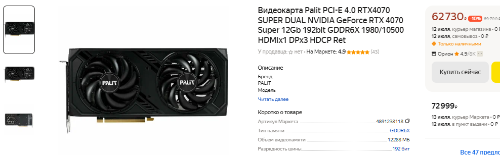 Получается, что за 10 лет в ценовом сегменте до 350 долларов NVIDIA смогла нарастить быстродействие примерно в 4 раза. Пожалуй, было бы ещё больше, если бы Дженсен Хуанг не жадничал. Как уже отмечалось выше, последние два поколения настольной графики разочаровывают. Мало того, наблюдается резкое подорожание, ведь ещё никогда за видеокарту серии GeForce хх70 не просили 600 долларов. Раньше за такую сумму можно было купить флагман, тогда как сегодня некоторые партнёры NVIDIA норовят продать геймерам прокачанные модели GeForce RTX 4070, цены на которые достигают 800 долларов. Эксперты полагают, что ждать снижения цен не приходится, ну а мы рассмотрим несколько видеокарт, которые неплохо смотрятся за свои деньги. Прежде всего обратим внимание на GeForce RTX 4070 SUPER. Эта видеокарта достаточно дорогая, но она имеет всё необходимое для того, чтобы забыть о необходимости апгрейда на следующие 3-4 года. 12 Гб памяти хватит для любых игр в 2К, а настройки можно вставить на максимальные. Длительный жизненный цикл обеспечит технология масштабирования. DLSS негативно влияет на качество картинки, но в будущем она позволит запускать даже самые требовательные игры. Если у вас есть 60 тысяч, то лучше видеокарты просто не найти.