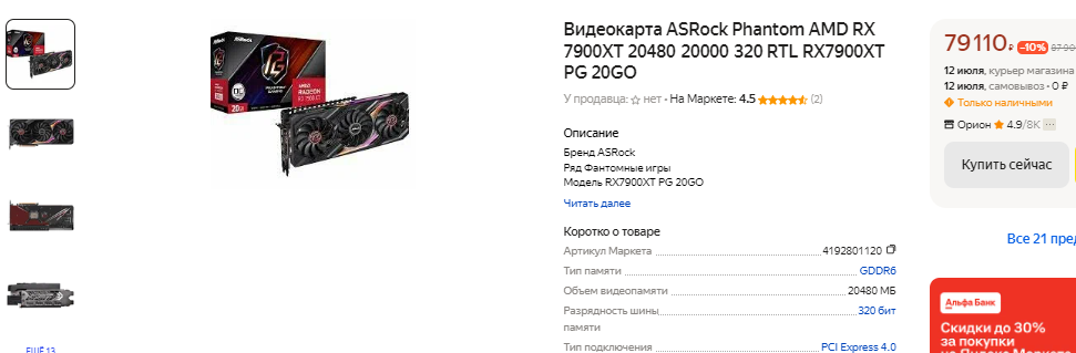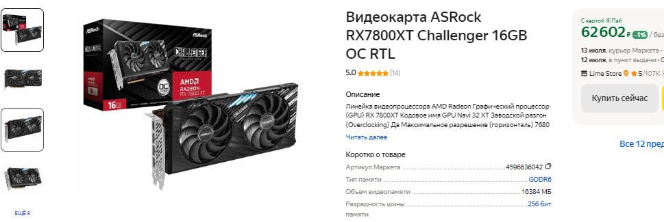 Немногим дешевле 45 тысяч в наличии Radeon RX 7700 XT. Это интересное предложение, позволяющие ворваться в 2К с минимальными расходами. Видеокарта имеет 12 Гб памяти, а значит вы не будете чувствовать ограничения даже в самых сложных сценах. Доступна технология масштабирования, ну а главным плюс Radeon RX 7700 XT – это выгодная стоимость. Жизненный цикл видеокарты будет точно ниже, чем у GeForce RTX 4070 SUPER, но и порог вхождения на целых 17 тысяч меньше. Пожалуй, это весомая причина сделать верный выбор. В качестве альтернативы указанной выше видеокарты NVIDIA можно взять Radeon RX 7800 XT. Владельцы не самых дорогих процессоров разницу между графическими чипами не заметят, а значит смогут получить примерно равное количество кадров в секунду. В теории Radeon RX 7800 XT обладает более высоким потенциалом, поскольку имеет 16 Гб памяти. Насколько такое количество оправдано и необходимо в актуальных играх, большой вопрос. В сети существуют тесты, доказывающие бесполезность 16 Гб в разрешении 2К. Возможно, через 4 года всё изменится, но тогда придёт время для смены видеокарты.