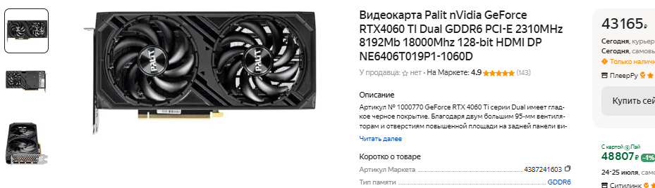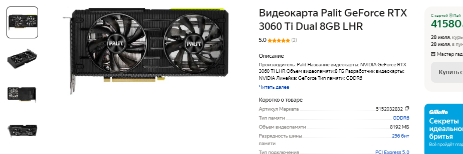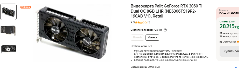 К примеру, за новенькую GeForce RTX 3060 Ti придётся выложить 41 тысячу рублей, тогда как на вторичном рынке она стоит чуть более 28 тысяч. Продавец пишет, что карта в порядке и даёт гарантию. В теории, можно рискнуть, но далеко не все геймеры ориентируются на бывшую в употреблении продукцию. Тесты доказывают, что GeForce RTX 3060 Ti в играх оказывается на 25% быстрее GeForce GTX 1080 Ti, но здесь не всё так очевидно. Большая часть игр тестировалась в разрешении 2К, ну а здесь 8 Гб памяти уже впритык. Это значит, что жизненный цикл GeForce RTX 3060 Ti окажется намного меньше, чем нам с вами хотелось бы, хотя цена такой видеокарты довольно высокая.