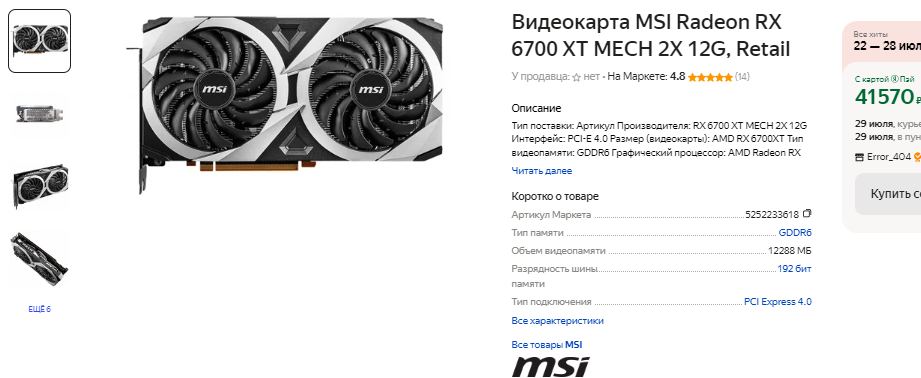 Искать альтернативы на вторичном рынке нет никакого смысла. Видеокарты с рук вызывают слишком много вопросов, поэтому мы рекомендуем присмотреться к решениям, которые ещё никогда никем не использовались. В качестве отличного GPU для 2К предлагаем купить Radeon RX 6700 XT. Видеокарта имеет 12 Гб памяти, что позволяет ей выглядеть гораздо лучше, чем указанная выше GeForce RTX 3060 Ti. По скоростным характеристикам видеокарты почти не отличаются, но уже сегодня в сложных сценах с Radeon RX 6700 XT просадок будет меньше. Нехватка видеопамяти станет ощущаться всё острее. Учитывая, что обе видеокарты стоят одинаково, выбор очевиден.