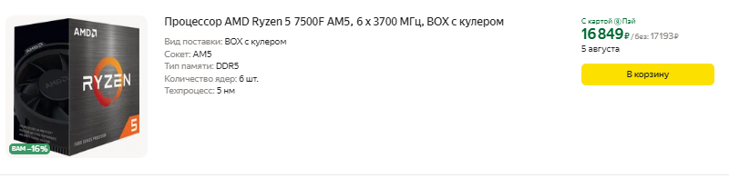 Если вы купили один из процессоров Intel, то вам остаётся только страдать. Именно так, ведь сбоям подвержен не только Core i5-14600K, но и Core i5-14400. Если вы только раздумываете о покупке компьютера, то самое время отказаться от продукции синего лагеря, ведь ничего хорошего пользователя нестабильных процессоров не ждёт. Именно поэтому сегодня мы соберём не самый дорогой игровой ПК с большим потенциалом для роста на процессоре и видеокарте производства AMD. В будущем предлагать вам флагманы Intel и все камни с не заблокированным множителем мы не станем. По крайней мере до тех пор, пока патч не исправит хотя бы 99% проблем. Ну и по традиции начнём с процессора. Если вы собираете недорогой игровой ПК, который будет тянуть все игры в ближайшие 4 года, то самое время обратить внимание на Ryzen 5 7500F. Камень относится к классу бюджетных, но это не мешает ему демонстрировать отличные результаты в игровых сценариях. В синтетических тестах он выглядит посредственно, но в играх способен обеспечить приличную производительность, особенно если у вас есть неплохая видеокарта.