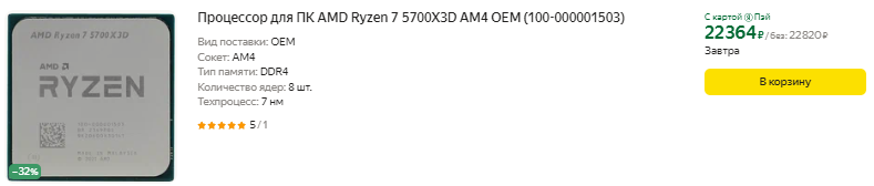 Начнём с процессора. Если вы не горите желанием переходить на новую платформу АМ5, то нет ничего плохого в том, чтобы в 2024 году собрать компьютер на базе АМ4. Благодаря тому, что платформа поступила в продажу много лет назад, выбор материнских плат огромен, а цены на комплектующие низкие. Берём Ryzen 7 5700X3D, который в настоящее время считается одним из наиболее перспективных процессоров на рынке. Камень демонстрирует очень высокие показатели в играх и может предложить 8 ядер. Ryzen 7 5700X3D не тянет на роль основы для высокопроизводительной рабочей станции, но с играми он справляется намного лучше аналогичных по цене процессоров Intel. В Германии этот камень остаётся одним из самых продаваемых, а многие пользователи покупают его для апгрейда, заменяя один из старых процессоров AMD. Жизненный цикл платформы АМ4 оказался очень продолжительным, ну а Ryzen 7 5700X3D будет актуален ещё много лет.