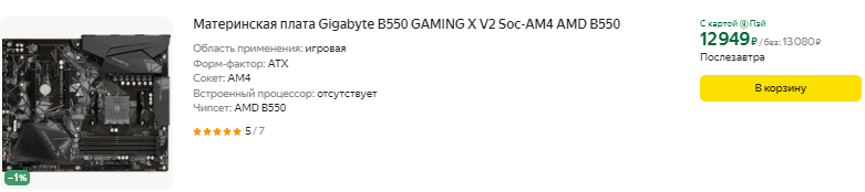 В продаже есть недорогие материнские платы, способные разместить данный процессор, но в немецкой сборке используется Gigabyte B550 Gaming X V2. Не будем отступать от списка, тем более, что в российской рознице такая материнская плата в наличии. Стоит она 13 тысяч и предлагает широкие возможности для разгона процессора и оперативной памяти. Неясно, для чего здесь такая плата, ведь Ryzen 7 5700X3D не разгоняется, но в данном случае мы ставим то, что рекомендуют немецкие специалисты. В качестве бонуса владельцы такой материнской платы получают доступ к интерфейсу PICe 4.0, что в будущем позволит установить скоростной твердотельный накопитель. Во всём остальном это обычная материнская плата, выполненная в форм-факторе АТХ. Ни о каком компактном корпусе мечтать не приходится, но зато наш компьютер будет просторным, а все комплектующие смогут получать достаточное количество охлаждения.