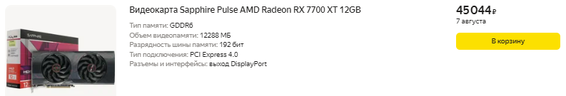 Далеко не всегда в спецификации на немецком сайте указан производитель той или иной комплектующей, поэтому мы точно не знаем принадлежность к бренду со стороны Radeon RX 7700 XT. Учитывая использование бюджетных комплектующих можно предположить, что речь идёт о недорогой видеокарте уровня Sapphire Pulse. Несмотря на не самую эффективную систему охлаждения такая видеокарта в играх показывает себя очень неплохо и способна тянуть даже самые требовательные новинки последних лет в разрешении 2К. В большинстве игр вам даже не придётся снижать настройки графики, наслаждаясь картинкой высокого качества с фрамрейтом выше 60 fps. 12 Гб памяти позволяют не волноваться о нехватке ресурсов, ну а это увеличивает жизненный цикл видеокарты, позволяя ей оставаться актуальной как можно дольше.