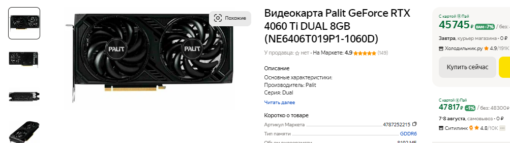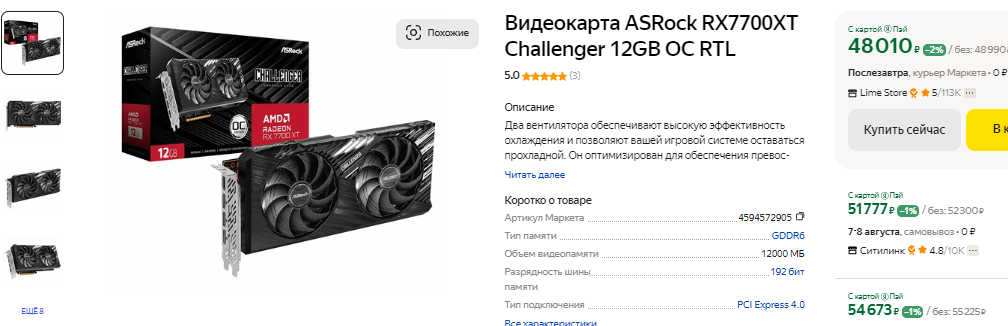 Речь идёт о GeForce RTX 4060 Ti и Radeon RX 7700 XT. Как видите, первую вы можете купить за 46 тысяч, тогда как вторую – за 48. Вообще, это всего лишь две модели, тогда как большая часть продукции на указанных выше графических чипах обходится на 5 и даже 10 тысяч дороже. В продаже можно встретить GeForce RTX 4060 Ti за 55 тысяч рублей, а также Radeon RX 7700 XT, за которую просят на пару тысяч дороже или дешевле. Всё зависит от аппетитов производителя и количества кулеров. Часто производитель использует заводской разгон, что также повышает конечную стоимость. Остановимся на том, что обе видеокарты стоят одинаково. Ниже вы можете увидеть несколько скриншотов, позволяющих сделать выводы о реальных скоростных показателях GeForce RTX 4060 Ti и Radeon RX 7700 XT.