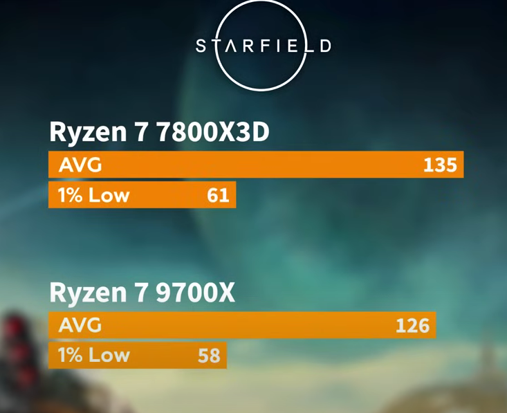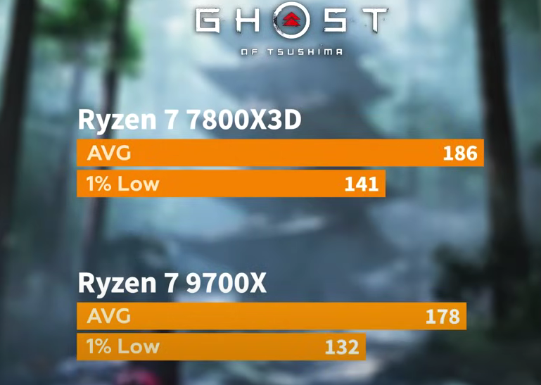 Пока неясно, чем на всё это ответит Intel. У компании достаточно проблем, а в итоге возникают сомнения, сможет ли вообще руководство выпустить новую линейку процессоров в 2024 году. Некоторые эксперты указывают, что более быстрые процессоры рынку не нужны. Всё просто, ведь бутылочным горлышком требовательных игр становятся именно видеокарты, ну а процессоры достигли своего апогея. Возможно, что всё обстоит именно так, но до тех пор, пока мы не увидим Core Ultra 9 285K, подобные заявления останутся бессмысленными. Давайте оставим философские вопросы без внимания и перейдём к более понятным вещам. Сегодня на повестке дня тестирование, проведённое на канале Testing Games. Авторы взяли новый Ryzen 7 9700X и сравнили его с одним из самых быстрых игровых процессоров Ryzen 7 7800X3D. Использовалась видеокарта GeForce RTX 4090, а разрешение дисплея было установлено на отметку 1080р, что позволило выжать максимум из всех предложенных комплектующих.