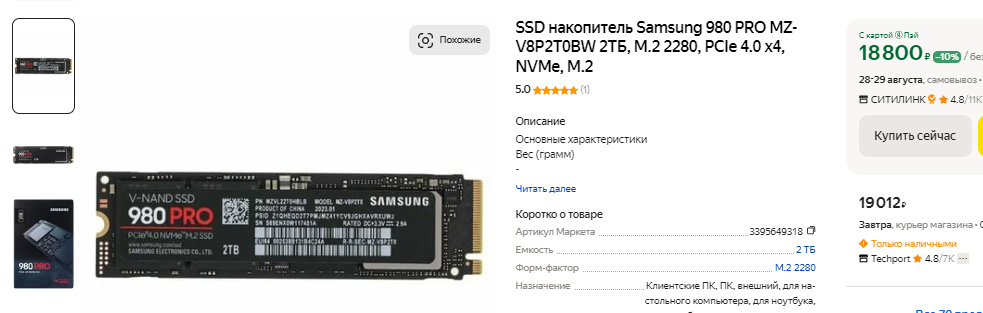 Завершим наш материал на твердотельном накопителе Samsung 980 PRO. Это не самый быстрый SSD на рынке, но точно один из наиболее надёжных экземпляров. За время использования можно перезаписать 1200 Тб, ну а это намного больше, чем вы скачаете из интернета за несколько десятилетий. Скорость чтения достигает 7000 МБ/с, что является одним из самых высоких показателей в своём классе, а вот записывать информацию удастся только на скорости 5000 Мб/с. На самом деле такие показатели хорошо заметны только в синтетических тестах, ну а сегодня вы можете купить скоростной твердотельный накопитель Samsung всего за 19 тысяч рублей. Ёмкость достигает 2 Тб, что обязательно понравится любителям компьютерных игр. Не секрет, что в последние годы некоторые тайтлы способны занять больше 100 Гб, ну а 2 Тб позволят не думать о заполнении накопителя как минимум несколько лет. Есть и другие комплектующие, которые сильно подорожают, но к данной теме мы вернёмся в одном из следующих материалов. Эксперты констатируют, что сделать мы с вами ничего не можем, а последствия санкций будут ощущаться всё более остро. Придётся использовать более сложные логистические цепочки, а цены обязательно пойдут вверх. Ну а когда всё это закончится, не знает никто, а значит придётся терпеть, находя наиболее выгодные предложения со скидками.