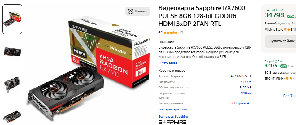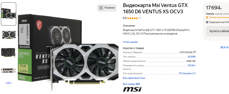 Radeon RX 7600 способна неплохо конкурировать с GeForce RTX 4060, но данная модель стоит на целых 5 тысяч дороже, поэтому брать такую видеокарту AMD мы вам не советуем. Учтите, что GeForce RTX 4060 обладает лучшей энергоэффективностью и потенциально лучше покажет себя во время разгона. Как мы могли убедиться, дополнительные 10% порадуют только ваше эго, но не окажут никакого влияния на скоростные показатели компьютера. Если вас не устраивает быстродействие GeForce GTX 1650 – купите GeForce RTX 4060. К сожалению, это самый разумный и эффективный выход из положения. Как уже было сказано выше, можно изучить предложения на вторичном рынке, но и там есть подводные камни, а полноценную гарантию беспочвенные заявления неизвестного продавца не заменят.