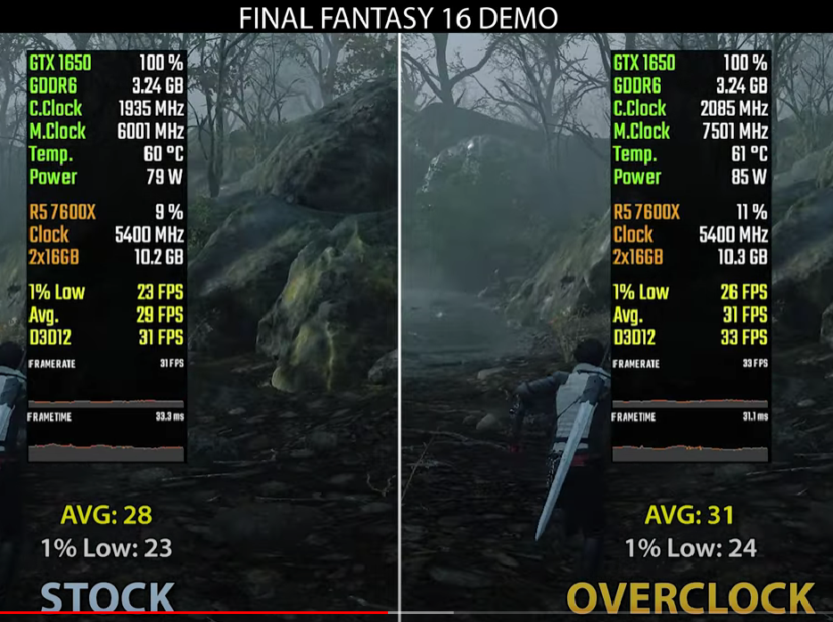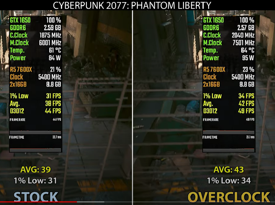 Причина в том, что большая часть видеокарт уже выжата с завода, ну а модели с повышенными тактовыми частотами стоят очень дорого и в целом невыгодны. Представьте себе, что вы решили проверить старый способ повышения количества кадров в играх, купив не самую свежую GeForce GTX 1650. Именно таким образом поступил автор канала NJ Tech. Он повысил тактовую частоту графического ядра на целых 180 МГц, а также умудрился поднять частоты видеопамяти на 1500 МГц. Тесты даны в сравнении со стоковым вариантом, где разгон не применялся. Главная задача заключалась в том, чтобы добиться приличного буста в актуальных играх с помощью разгона и пары бесплатных утилит.
