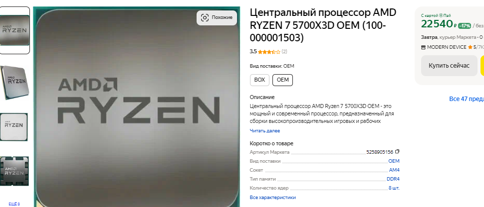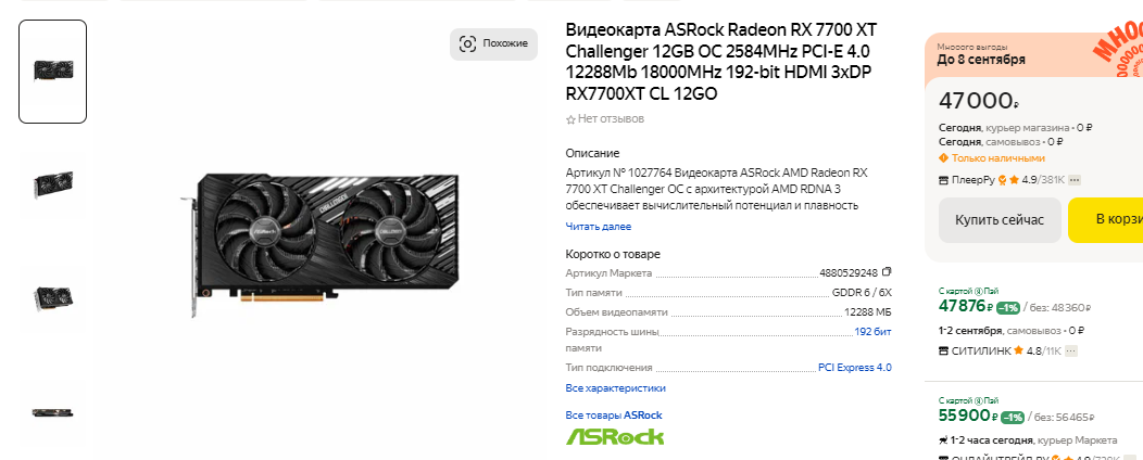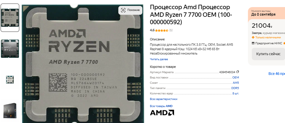Иногда геймерам и вовсе не требуется новый системный блок. Например, если у вас уже есть компьютер на базе платформы АМ4, но процессор там старый и медленный, то железо можно ускорить за счёт покупки Ryzen 7 5700X3D. Это один из самых быстрых игровых камней под сокет АМ4, который демонстрирует результаты, сходные с Ryzen 7 7700. Ну а поскольку под Ryzen 7 5700X3D вам потребуется недорогая материнская плата и оперативная память DDR4, то конечная стоимость ПК окажется ниже. С таким процессором можно присмотреться к действительно мощным видеокартам. Например, если вам достаточно игр в разрешении 2К, то можно обойтись Radeon RX 7700 XT. Здесь вы получите 12 Гб памяти и очень приличную производительность в играх. Стоит такая видеокарта до 50 тысяч рублей, предлагая картинку максимального качества без значительных инвестиций. Энтузиастам можно посоветовать Radeon RX 7900 XT. Такая видеокарта включает 20 Гб памяти и может тянуть даже самые требовательные игры в разрешении 4К. Она заметно уступает GeForce RTX 4090, но стоит в 3 раза дешевле. С такой видеокартой можно купить даже Ryzen 7 7800X3D, получая почти максимальную производительность за свои деньги.