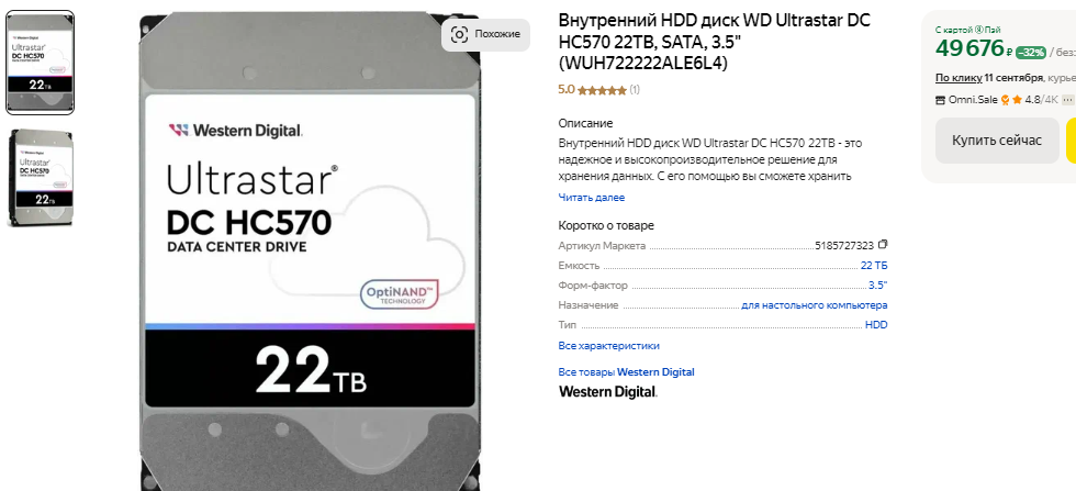 На самом деле для создания действительно солидного архива вам потребуется более ёмкий накопитель, ну а это – Western digital Red Pro на 16 Тб. Объём памяти поражает воображение, но есть и больше. Всё та же Western digital имеет в портфолио Ultrastar объёмом 22 Тб, о котором мы писали ранее. В серверном сегменте уже можно встретить жёсткие диски объёмом 30 Тб, ну а в 2025 году в продаже появятся решения на 40 Тб. К середине 2026 на огонёк заглянут накопители ёмкостью 50 Тб, ну а это значит, что выбор станет ещё больше. Эксперты пишут, что хранилища данных не нуждаются в высокой скорости доступа. В нашем случае большая библиотека фильмов будет функционировать годами, а самая главная проблема заключается в том, где найти столько интересного контента.