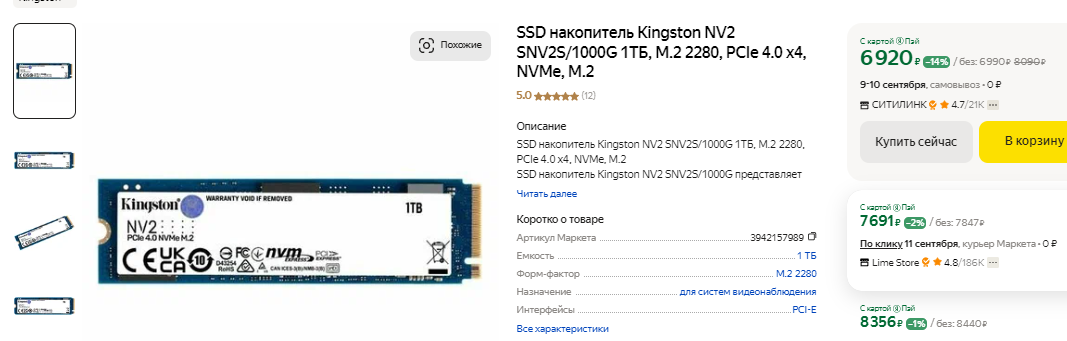 Выбор SSD огромен, ну а одним из наиболее популярных остаётся Kingston NV2. В интернете есть тесты, авторы которых доказывают один простой факт: играм не нужна запредельная скорость чтения и записи. Если вы запишите одну и ту же игру на указанный выше Apacer, а после на Kingston NV2, то запуск её не будет отличаться по времени, а переходы между уровнями и загрузка виртуального мира покажет примерно аналогичные показатели. При этом Kingston NV2 подходит для более современных компьютеров с интерфейсом подключения М.2 и по чистой скорости превосходит старый SATA в 5-6 раз.