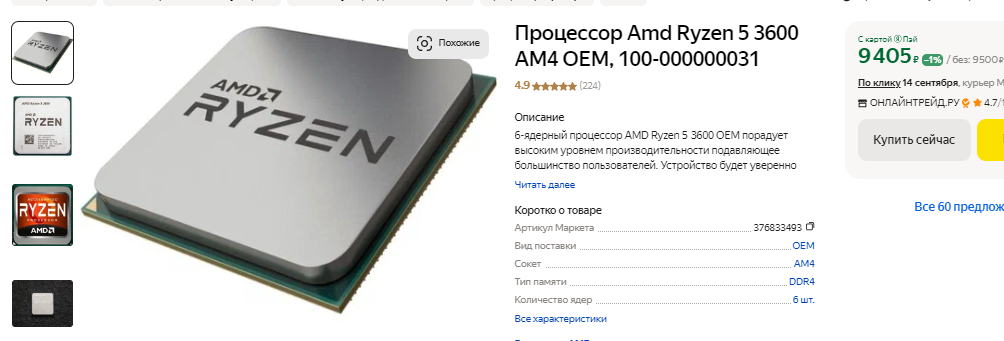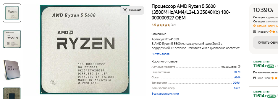 Начнём с Ryzen 5 3600. Так бывает, что время даже хороших и популярных продуктов подходит к концу. Увы, но время Ryzen 5 3600 ушло, а сегодня покупать такой процессор в рознице мы вам не советуем. Камень медленный, старый и уже не способен тягаться с новинками, которые выходили в последние несколько лет. Если вам казалось, что прогресс на рынке процессоров остановился, то изучите тесты решений AMD последних поколений. Ну а мы предлагаем купить Ryzen 5 5600. Стоит он столько же, как и указанный выше Ryzen 5 3600, но в играх покажет себя намного лучше. Вообще, даже этот процессор не идеален для сборки игрового компьютера, но в качестве офисного ПК или рушения для начинающего школьника вполне сойдёт.