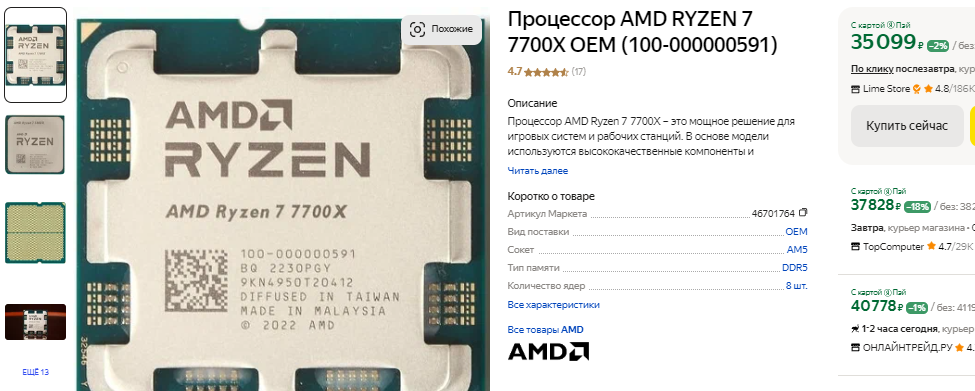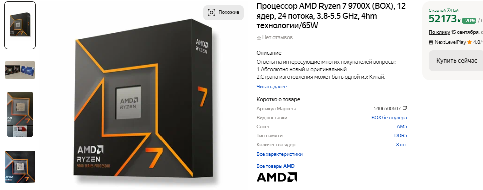 Ну и завершим наш материал на новой серии AMD Ryzen 9000. Если вы встретите такой камень в продаже, то лучше купите что-то другое. Спрос на подобные решения на мировом рынке крайне незначительный, а причина в том, что прирост между поколениями оказался слишком низким. Ну а поскольку AMD уже на старте продаж установили не самые высокие цены, то делать скидки пока нет никакой возможности. Теоретически, когда в продажу поступит новая серия Intel, то тётушка Су начнёт что-то предпринимать, а пока 8-ядерный Ryzen 7 9700X смотрится неубедительно. С видеокартой до 60 тысяч он покажет минимальный прирост быстродействия по сравнению с Ryzen 7 7700X, тогда как разница в стоимости превышает 17 тысяч рублей. За эти деньги вы к Ryzen 7 7700X можете купить хорошую материнскую плату или 32 Гб скоростной оперативной памяти DDR5-6400. Поскольку Ryzen 7 9700X не даёт никаких преимуществ, то переплачиваете вы исключительно за новизну. Камень почти месяц ехал в Россию, ну а спрос на него оказался таким же низким, как и в других странах.