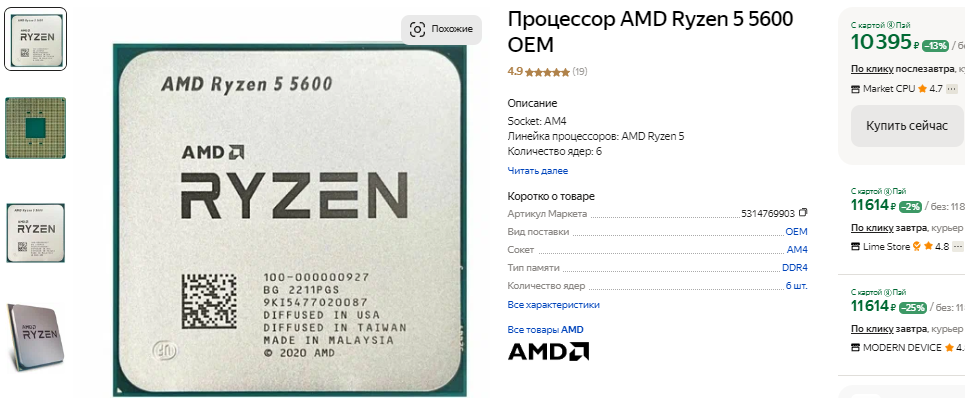 Многие наши читатели не покупают консоли, поскольку предпочитают скачивать игры с торрентов. На самом деле, даже если вы не принадлежите к лагерю Весёлого Роджера, то могли заметить, что в цифровых магазинах на ПК цены на игры ощутимо ниже, а спустя год купить блокбастер можно в 2 раза дешевле, чем он предлагается на аналогичной площадке Sony. Кроме того, игровой компьютер можно использовать и для работы, когда приставка создана только для развлечений. Если перевести 800 евро в российскую валюту, то можно получить 80 000 рублей. Скорее всего, PlayStation 5 Pro в первые месяцы будет стоить не дешевле 90 000 рублей, а значит мы соберём игровой ПК, который окажется максимально похож на приставку за ту же сумму. Начнём с процессора. Эксперты полагают, что самым слабым звеном PlayStation 5 Pro остаётся посредственный процессор. По этой причине разработчикам приходится тратить много времени на оптимизацию, зато это позволяет нам выбрать не самый дорогой Ryzen 5 5600. Внутри консоли стоит ещё более печальный аналог AMD, значит выбранный нами процессор позволяет справляться с любыми задачами на вполне уверенном уровне. Его главное преимущество заключается в низкой цене, а всё остальное – это компромисс. Процессор построен на платформе АМ4, значит провести апгрейд компьютера без смены материнской платы уже не выйдет. В таком же положении оказываются и владельцы PlayStation 5 Pro, которые в лучшем случае могут добавить твердотельный накопитель большой ёмкости.