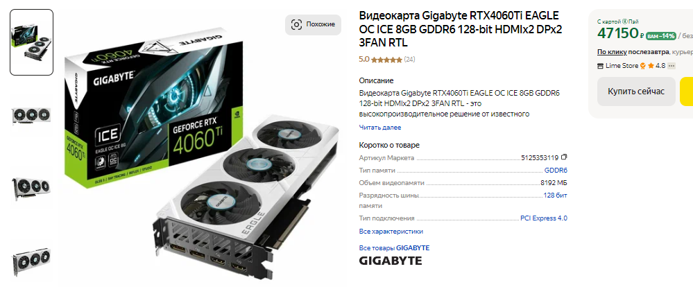 Отличные перспективы, а теперь давайте подумаем, как полученные сегодня знания могут нам помочь в выборе видеокарты. В ценовой категории до 35 тысяч можно встретить сразу три популярные видеокарты: Radeon RX 7600, GeForce RTX 3060 и GeForce RTX 4060. По скоростным характеристикам первая и третья примерно равны, тогда как вторая отстаёт на 10%. На GeForce RTX 3060 доступна только DLSS 2, тогда как более новая GeForce RTX 4060 предлагает DLSS 3. Стоимость GeForce RTX 4060 ощутимо выше, ну а самая примитивная модель с одним кулером обходится в 34 тысячи рублей. Это значит, что за нормальную версию придётся заплатить 37 тысяч и дороже, ну а всё это ещё и из-за наличия более продвинутой технологии масштабирования. В игровых сценариях DLSS 3 выдаёт более качественную картинку и выше фрамрейт, но теперь мы знаем, что при помощи FSR 3 можно оживить даже не самую новую видеокарту NVIDIA. Пользуйтесь этой информацией, ведь GeForce RTX 3060 имеет 12 Гб памяти и с процессором за 15-20 тысяч будет примерно равна по скорости с GeForce RTX 4060.