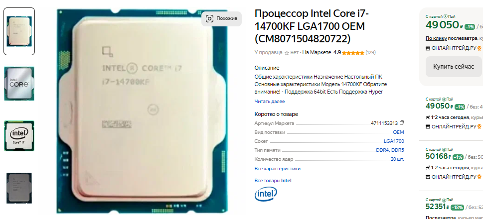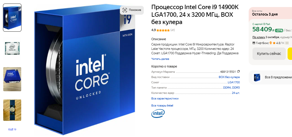 Стремительно теряет почву под ногами и флагман Intel. Мало того, что такие процессоры до сих пор продолжают гореть по всему миру, так Core i9-14900K ещё и является тупиковой ветвью. Как уже отмечалось выше, настольные процессоры следующего поколения Core Ultra 200 будут работать с сокетом LGA 1851, а значит сделать апгрейд компьютера с Core i9-14900K без замены материнской платы не удастся. А ведь процессор стоит 60 тысяч рублей, но явно не оправдывает ожиданий энтузиастов. Мы также не рекомендуем покупать Core i7-14700KF и Core i5-14600KF. Оба процессора слишком дорогие и уже совсем скоро получат более мощные аналоги нового поколения. Цены начнут снижаться, а удачных решений для любителей высоких скоростей у нас пока нет.