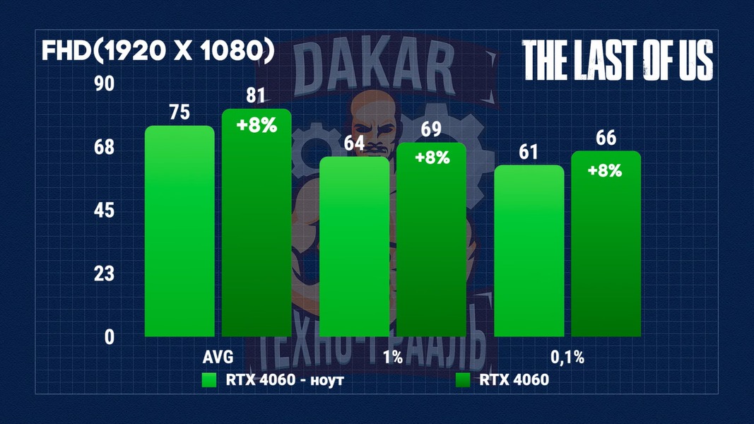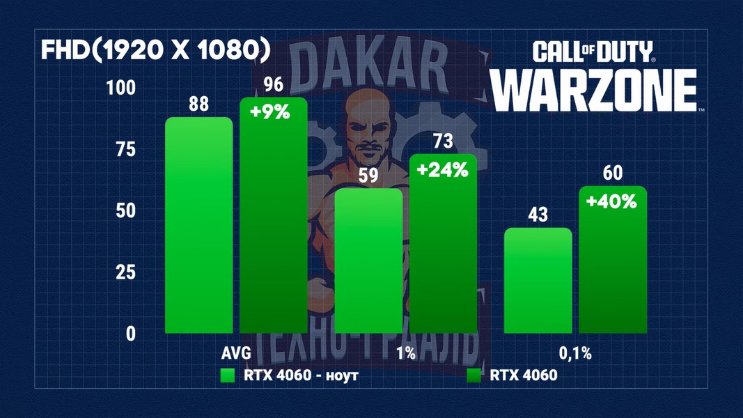 Прежде всего выяснилось, что во многих играх разница между настольным компьютером и ноутбуком не превышает 10%. Важно понимать, что различия не становятся больше после активации трассировки лучей или технологии масштабирования. Таким образом DLSS 3.0 позволяет на обеих платформах получить прирост быстродействия, хотя на ноутбуке теплопакет видеокарты GeForce RTX 4060 оказался значительно ниже. Например, в Cyberpunk 2077 разница укладывается в 7-11% в зависимости от используемых сценариев, тогда как в Warzone на игровом ПК получить удаётся на 7-9% больше. Столько же доступно и на The Last of Us, а вот в Hogwarts Legacy с активной трассировкой лучей и включённой технологией масштабирования наблюдается разница до 31%.