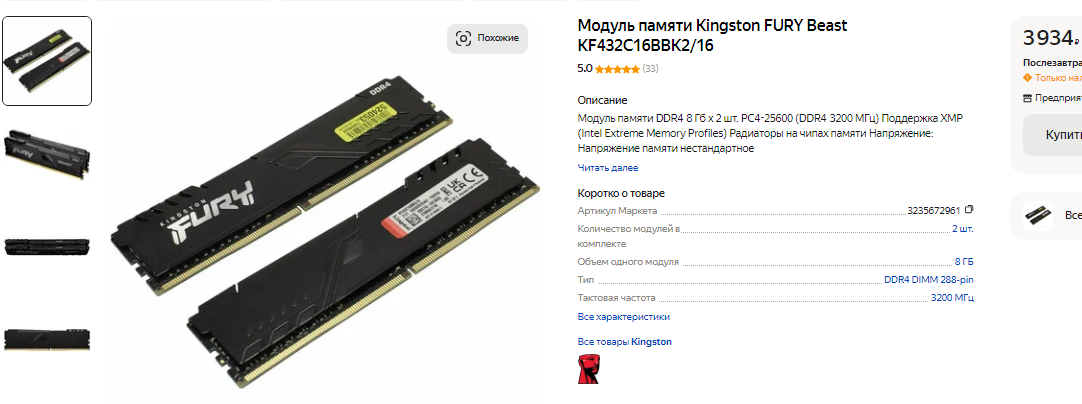 Долго думать над выбором ОЗУ не будем, ведь нам подойдут две планки по 8 Гб производства Kingston. Производитель пользуется уважением в отрасли и выпускает качественную продукцию. Для перспективной игровой системы рекомендуется брать сразу 32 Гб оперативной памяти, но в нашем случае мы имеем дело с бюджетным вариантом, который рассчитан на доступ к играм в разрешении 1080р. Тесты доказывают, что во многих играх указанный выше ноутбук позволяет добиться от 60 кадров в секунду на высоких настройках графики в большинстве игр.