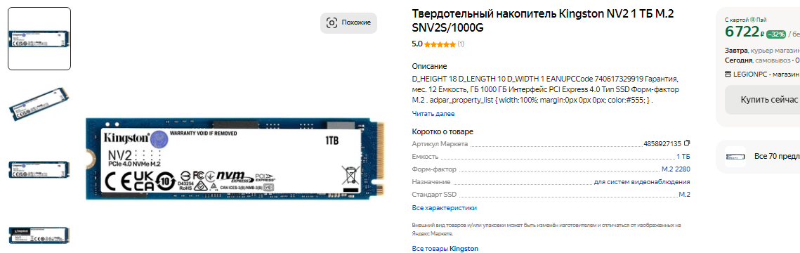 В комплекте с ноутбуком идёт скромный твердотельный накопитель ёмкостью 512 Гб, поэтому мы предлагаем не экономить пару тысяч рублей, выбрав SSD объёмом 1 Тб. Столько свободного пространства хватит для размещения игр, основных программ и большей части личных данных. Если вы планируете создать файловый архив для личных роликов, то придётся потратиться, но в данном случае перед нами такая задача не стояла. Выбранные твердотельный накопитель предлагает скромные скоростные характеристики, что не мешает собранной системе чувствовать себя в актуальных играх очень уверенно. Потенциал материнской платы позволяет ощутимо увеличить скорость доступа к данным, но заметить реальный прирост быстродействия удастся в нескольких сценариях. Именно поэтому переплату в данном случае считаем нецелесообразной.