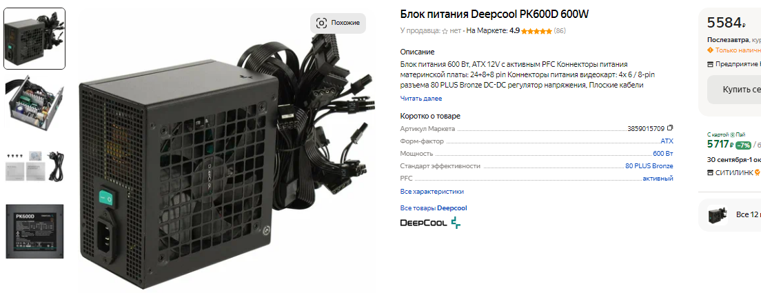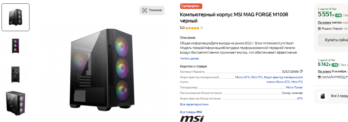 Ни одна сборка не обходится без блока питания и корпуса. Даже если мы пытаемся собрать экономичный ПК, то придётся взять качественные комплектующие. Например, Deepcool PK600D, который без проблем запустит наш системный блок, поскольку представленная выше сборка не отличается высокими требованиями. Присутствует стандарт энергоэффективности 80+ Bronze, что идёт в общую копилку и позволяет надеяться на высокую стабильность сборки. Корпус MSI предлагает достаточно пространства для творчества, а также включает 4 кулера из коробки. Они охладят пыл даже более мощных комплектующих, но нам точно не повредят.
