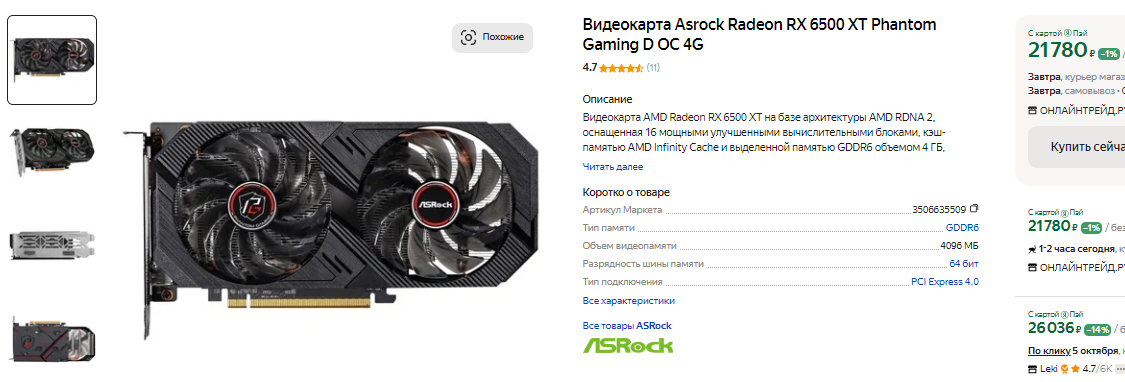 Рядовые геймеры плохо разбираются в графически чипах, поэтому могут купить далеко не самую быструю и выгодную видеокарту. Сегодня мы разберём 5 самых сомнительных предложений, которые только можно встретить в российской рознице. Учитывайте, что большая часть видеокарт прошлых поколений уже сильно устарела, поэтому нужно ориентироваться исключительно на новые и скоростные решения. Даже эта тактика работает не всегда, ну а мы начнём с Radeon RX 6500 XT. Видеокарта стала настоящим позором AMD. Долгое время представители красных уверяли, что игровая видеокарта должна иметь 8 Гб видеопамяти и больше, но по непонятной причине выпустили Radeon RX 6500 XT, у которой было всего 4 Гб. На этом эксперимент не закончился, ведь внутри стоит 64-битная шина с низкой пропускной способностью. Но и это не всё, ведь руководство AMD решила добить бюджетную видеокарту, лишив её поддержки интерфейса PCIe 3.0. Если запустить Radeon RX 6500 XT на старом ПК, то по сравнению с эталонными значениями вы не досчитаетесь около 30% производительности, ну а спустя несколько лет после своего выхода Radeon RX 6500 XT всё так же плоха, как и в первые дни после релиза.