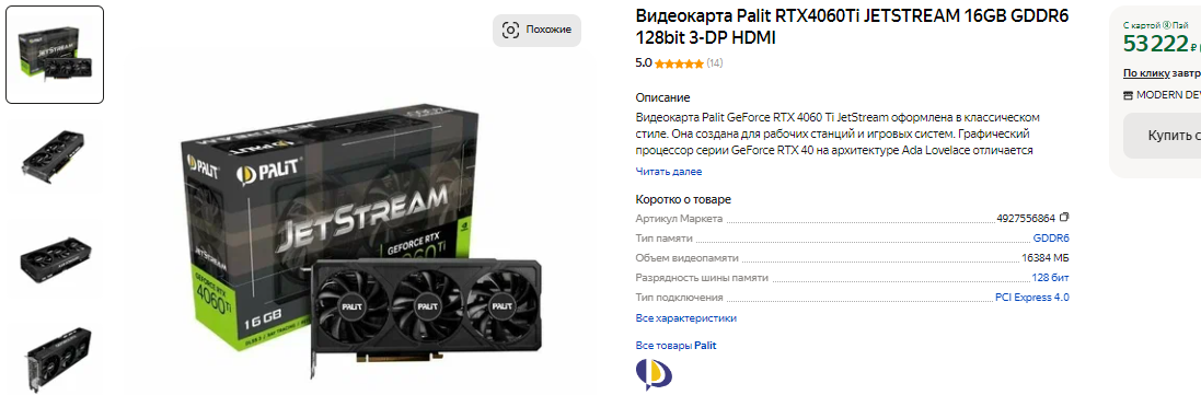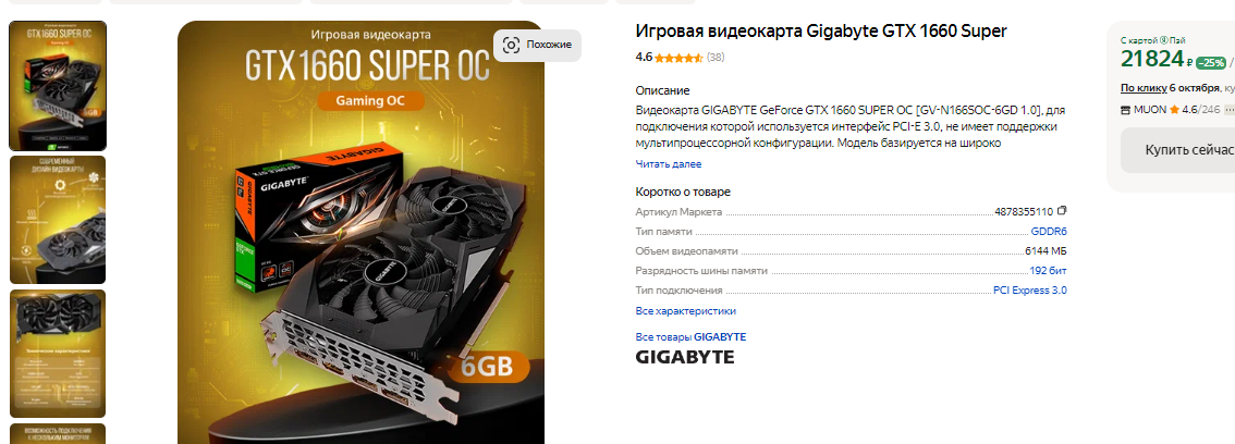 Если у вас на руках ограниченная сумма денег, то лучше обратите внимание на GeForce GTX 1660 SUPER. NVIDIA прекратила выпуск этой видеокарты в 2024 году, но купить её в магазинах ещё можно. Стоит она столько же, как и Radeon RX 6500 XT, но в играх ощутимо быстрее. Мало того, здесь 6 Гб памяти, работающей со 192-битной шиной. Проблем с поддержкой PCIe 3.0 нет, а сама видеокарта прилично справляется с играми в разрешении 1080р на высоких и средних настройках графики. Это очень далеко от оптимальной видеокарты, но в данном случае всё определяется ценой. В сегменте до 22 тысяч ничего лучше найти не удастся.