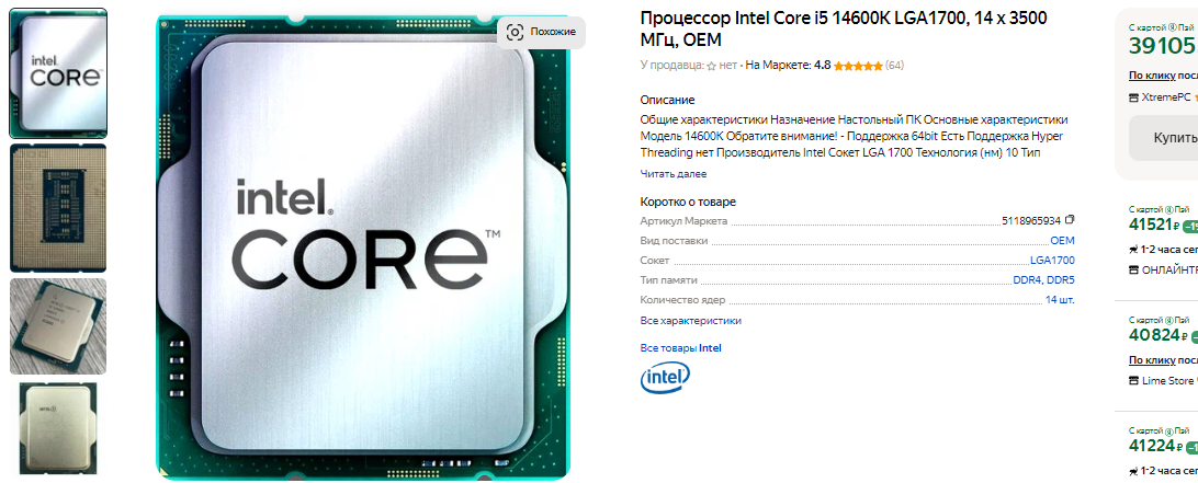 Неясно, для кого вообще в рознице лежит Core i5-14600K за 40 тысяч рублей, ведь процессор точно не соответствует такой высокой стоимости. К конкурирующим решениям мы перейдём чуть ниже, а пока добавим, что даже ранее считавшимся народным сегмент не может рекомендоваться для покупки. К примеру, Core i5-14400F стоит дороже 20 тысяч рублей, но не имеет никаких перспектив. Как уже отмечалось выше, сокет LGA 1700 больше не поддерживается, а значит увеличить производительность компьютера без значительных инвестиций уже не выйдет. Для понимания проблемы можно ознакомиться с тестами по ссылке. Так вот, Ryzen 5 7500F и Core i5-14400F примерно равны по скоростным характеристикам, но камень AMD легко можно заменить в будущем, ведь сокет АМ5 останется актуальным ещё 2-3 года. Это демонстрирует отношение производителя к потенциальным покупателям, предлагая максимально длительный жизненный цикл и технологическую поддержку долгих пять лет или даже больше.