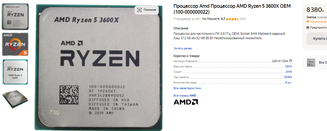 Добавим, что слепо покупать процессоры AMD вам всё же не стоит. Так, в продаже до сих пор можно встретить Ryzen 5 3600X. Многие геймеры помнят, что много лет назад этот камень пользовался высоким спросом, но забывают, что время не стоит на месте. Даже Ryzen 5 5600 в играх ощутимо быстрее, ну а мы не советуем вам покупать слишком старые процессоры обеих компаний. Для офисного ПК вам хватит Ryzen 5 3600X с головой, но когда вы решите купить игровую видеокарту за 50 тысяч рублей, то тут же поймёте, что прогадали, ведь более современные камни не только быстрее, но и обладают более высоким потенциалом для апгрейда.