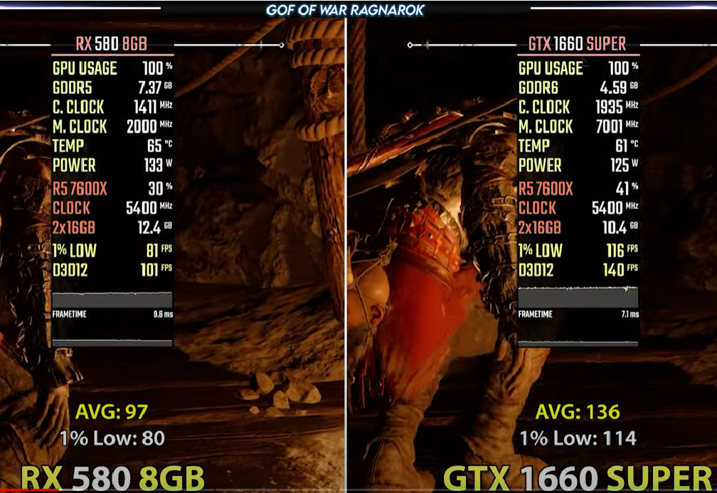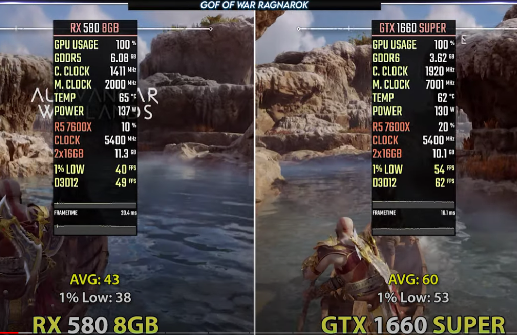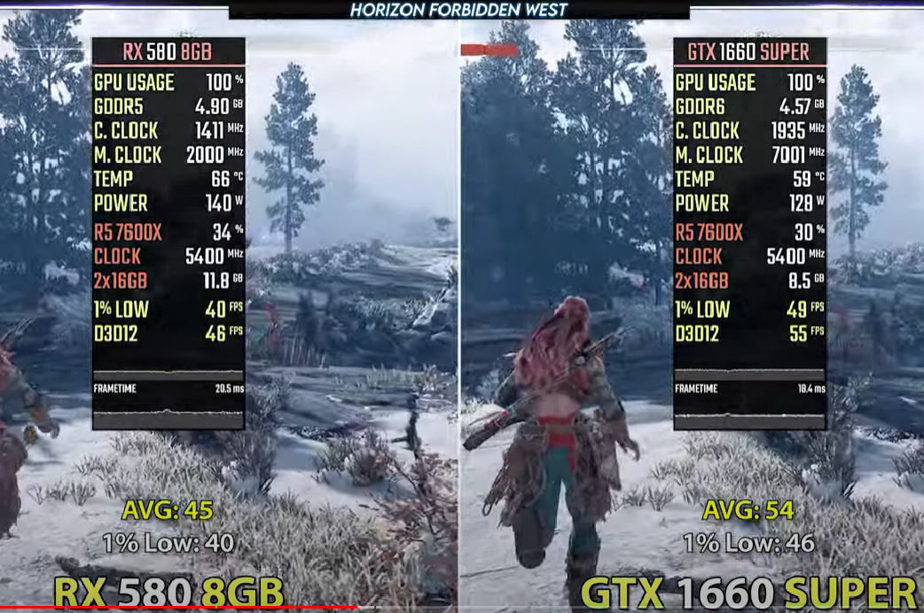 Как будет на самом деле, пока сказать сложно, но сегодня конкуренция строится вокруг противостояния DLSS 3 и FSR 3. И вот здесь самое время заметить, что технологии AMD не только имеют открытый код, но и являются более дружелюбными. Например, финальная версия FSR 3.1 не только поддерживает видеокарты красной команды, но и заработает на всех видеокартах серии GeForce, а также Intel Arc. Охват поражает, а особенно это полезно в том случае, если речь идёт о видеокартах, которые выпущены слишком давно и не имеют поддержки технологий масштабирования. Сегодня мы рассмотрим тестирование, проведённое на канале NJ Tech. Автор сравнил старые Radeon RX 580 и GeForce GTX 1660 SUPER, увеличив количество кадров за счёт технологии масштабирования AMD. Ознакомиться со скриншотами вы можете выше и ниже.