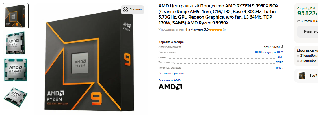 Если вы следите за происходящем на рынке полупроводников, то могли слышать о том, что новые процессоры считаются настоящим провалом и вызвали остро негативную реакцию как среди рядовых пользователей, так и технологических экспертов. Если сравнивать серию Ryzen 9000 и Ryzen 7000 в условиях близким к идеальным, то новые процессоры в играх будут примерно на 10% быстрее. Тесты доказывают, что с видеокартой за 60 тысяч рублей (например, Radeon RX 7800 XT) разницу вы можете не увидеть, тогда как владельцы не самой медленной GeForce RTX 4060 не смогут увидеть прироста кадров в секунду даже в синтетических бенчмарках. Ryzen 9 9950Х не стал самым быстрым игровым процессором, но на самом деле он не стал даже самым быстрым процессором для решения рабочих задач. В сети есть сравнительные тесты, в рамках которых новый флагман AMD демонстрирует почти те же показатели, что и Core i9-14900K. Это провал, ведь смысла покупать Ryzen 9 9950Х нет никакого. Он дорогой, но не способен обогнать находящиеся в продаже решения в самых востребованных сценариях. Представители красной команды заявляют, что большая часть геймеров покупает процессоры для игр, поясняя таким образом скромную рабочую производительность. Согласимся, что отчасти эти ребята правы, но в этом случае логика в приобретении Ryzen 9 9950Х вообще отсутствует, ведь в продаже есть более скоростной Ryzen 7 7800X3D.