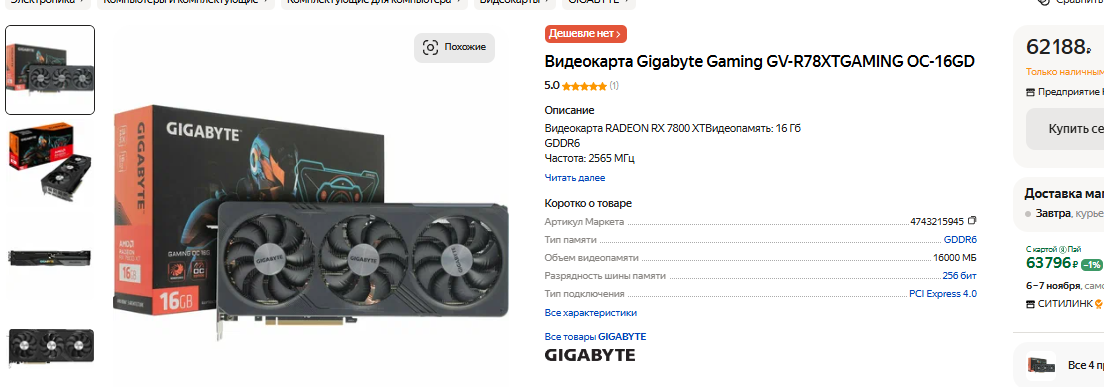 Видеокарту решено было выбрать максимально быструю, поэтому в ход пошла Radeon RX 7800 XT. Она имеет 16 Гб памяти и обеспечивает приличную картинку на максимальных настройках в разрешении 2К. Кстати, у обратившегося ко мне читателя монитор имеет именно такое разрешение, поэтому брать видеокарту дороже не было никакого смысла. Выбор видеокарты, процессора и других компонентов может сильно различаться, но всегда нужно стремиться сделать так, чтобы готовая система оказалась максимально эффективной. В данном случае процессор способен раскрыть видеокарту, ну а Radeon RX 7800 XT не только быстрая, но и обладает приличным запасом производительности. Менять такую видеокарту придётся не скоро, а за счёт не самой высокой стоимости она неплохо вписалась в бюджет. Первоначально я хотел предложить GeForce RTX 4070 SUPER, но NVIDIA традиционно просит за свою продукцию больше денег. Стоит такая видеокарта с тремя кулерами на 15 тысяч рублей дороже, но не имеет никаких преимуществ.