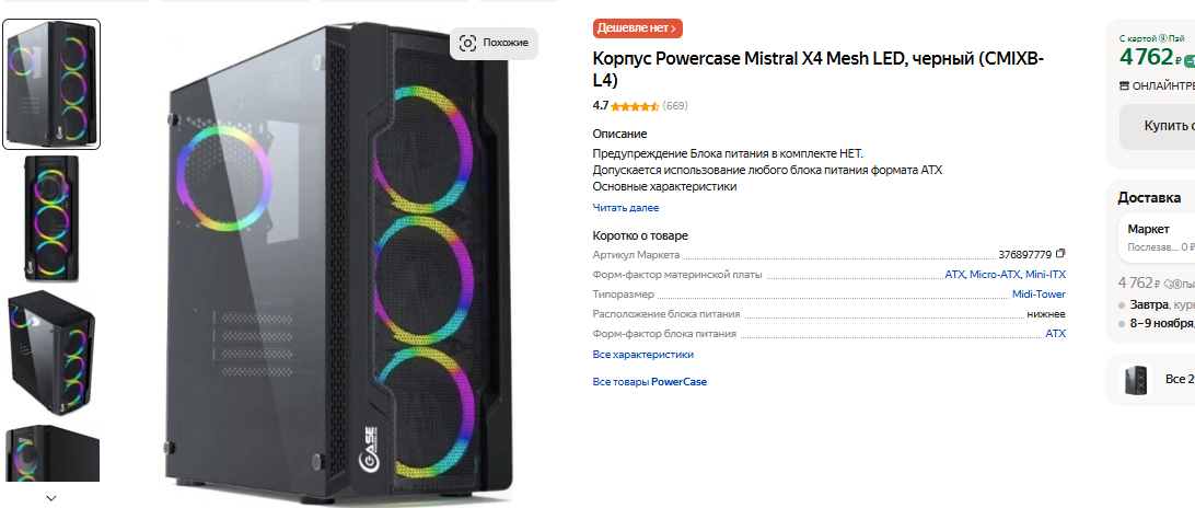 В качестве корпуса я предложил Powercase Mistral X4 Mesh LED, но читатель заявил, что хочет подобрать системный блок самостоятельно. Я пояснил ему некоторые основные параметры, которые требуется соблюдать. Например, выбранный мной корпус выполнен в типоразмере Midi-Tower, но материнская плата может поместиться и в менее крупный системный блок. Важно убедиться, что туда без проблем установится видеокарта, тогда как остальные комплектующие не такие капризные. Кроме того, важно обеспечить отвод горячего воздуха, а в данном случае установлено сразу 4 дополнительных кулера. Подсветку можно и отключить, но наличие вентиляторов обязательно. Видеокарте и другим комплектующим не должно быть слишком тесно, поэтому брать крошечные корпуса я бы всё же не стал. Если подсчитать все затраты, то готовый ПК затянул на 135 тысяч рублей. Поскольку была озвучена примерно такая сумма, то я идеально уложился в требования обратившегося ко мне читателя. Он был не против, если я напишу материал на эту тему на нашем сайте и даже обещал отписаться в комментариях. Но только в случае, если там не будет слишком много токсичных любителей выплеснуть негативные эмоции. Лично мне сборка нравится, ну а вы можете оставить комментарии, если они у вас, конечно, есть.