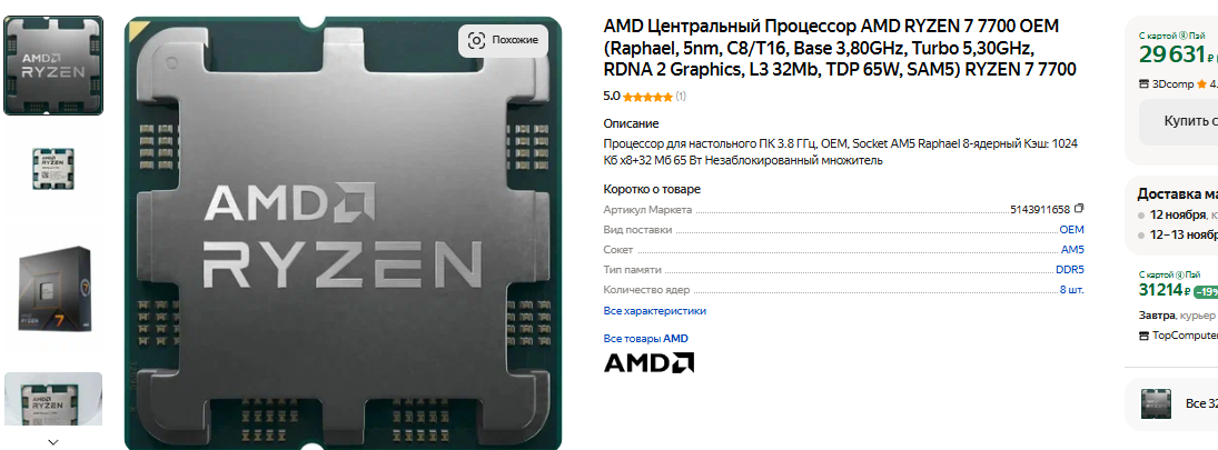 Именно поэтому многие эксперты советуют вместо Ryzen 7 5700X3D брать Ryzen 5 7500F. Он не такой быстрый, но гораздо интереснее с точки зрения потенциала для апгрейда. К сожалению, цена самого процессора ничего не решает. Так, вам придётся потратить в 2 раза больше денег на оперативную память и материнскую плату, если вы решитесь собирать ПК на базе сокета АМ5. Для зажиточных энтузиастов такое решение оправдано, тогда как рядовые пользователи хотят максимально эффективно потратить свои деньги. Сборка ПК на базе окажется дешевле, в чём вы можете убедиться по ссылке.