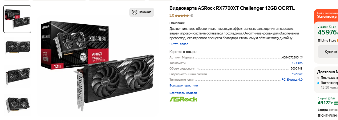Ключевым звеном компьютера является видеокарта. Решения за 35 тысяч рублей с трудом справляются с самыми высокими настройками в 1080р, ну а мы бы хотели взять такой компьютер, который обеспечить доступ даже к разрешению 2К. Задача не из лёгких, ведь под наши запросы в продаже есть только Radeon RX 7700 XT. Эта видеокарта имеет 12 Гб и позволит запускать большую часть игр в 2К на высоких настройках графики, получая стабильно выше 60 кадров в секунду. Есть досадные исключения типа S.T.A.L.K.E.R. 2: Heart of Chornobyl, но чаще всего речь идёт о плохой оптимизации и лени разработчиков. Скорее всего, требования к играм будут увеличиваться медленно, но если вы хотите остаться в 2К после 2027 года, то вам однозначно придётся заменить видеокарту. В начале 2025 года в продажу выйдет новая серия настольной графики NVIDIA и AMD, а в конце 2026 или начале 2027 ещё одна. Это значит, что прибавка производительности между поколениями окажется довольно высокой, ну а Radeon RX 7700 XT к этому времени действительно придётся заменить. Пока же видеокарта будет радовать вас высоким качеством графики, ну а при желании можно запустить технологию масштабирования. FSR 3 позволяет увеличить количество кадров в секунду на 50 и даже 100 процентов, ну а это очень неплохо, если вы задержитесь с апгрейдом на год или два.