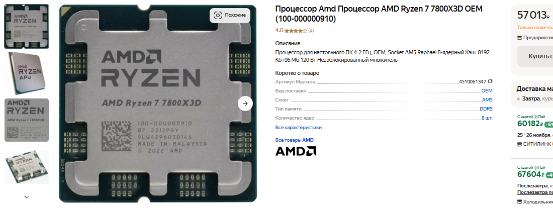 Вообще, если вы не готовы тратиться на видеокарту за 300 тысяч рублей, то нет никакого смысла инвестировать в флагманский процессор. Тесты проводились с участием GeForce RTX 4090, ну а флагман NVIDIA слишком дорогой и установлен в 1% игровых систем. Ну а поскольку с менее производительной видеокартой разница между процессорами будет на такой заметной, то мы рекомендуем присмотреться к Ryzen 7 7700X. Он не такой дорогой, как указанные выше решения, но точно понравится тем, кто собирает перспективный системный блок с прицелом на апгрейд. Ryzen 7 7700X также построен на сокете АМ5, что говорит в пользу правильности нашего выбора и свидетельствует о длительном жизненном цикле.