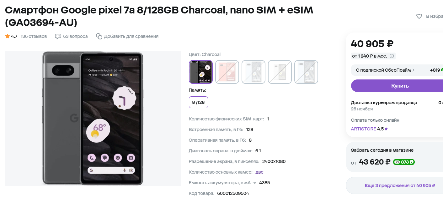 Google Pixel 7a. Этот смартфон представляет собой воплощение минимализма и эффективности. Он создан для тех, кто ценит качество фотографий и простоту использования. Камера, усиленная ИИ, способна выдать невероятные результаты даже при минимальном освещении. Система в виде «чистого» Android, лишена дополнительных надстроек, что обеспечивает плавную работу и длительные обновления. Содержит оптимизированный портретный режим, ночную съёмку и поддержку RAW-фотографий. Подойдёт для любителей фотографий, экспериментов с ночной съёмкой и тех, кто хочет испытать опыт нового Android в первых рядах.