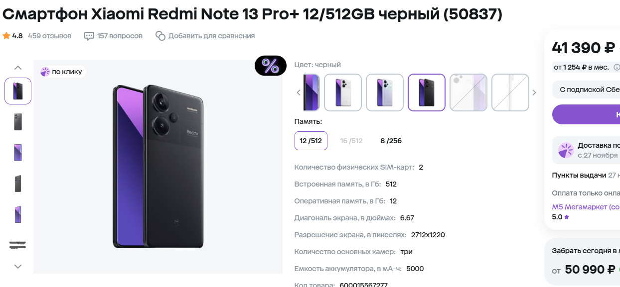 Xiaomi Redmi Note 13 Pro+. Камера на 200 Мп звучит как маркетинг, но на самом деле это шанс запечатлеть мельчайшие детали. Экран с высокой частотой обновления делает использование плавным и приятным, а быстрая зарядка спасёт вас после целого дня, проведённого на природе или работе. Камера поддерживает HDR10+, а AMOLED-дисплей предлагает частоту 120 Гц. Включает батарею, мощность которой достигает 120 Вт. Подойдёт для энтузиастов и тех, кто хочет максимум возможностей за разумные деньги.