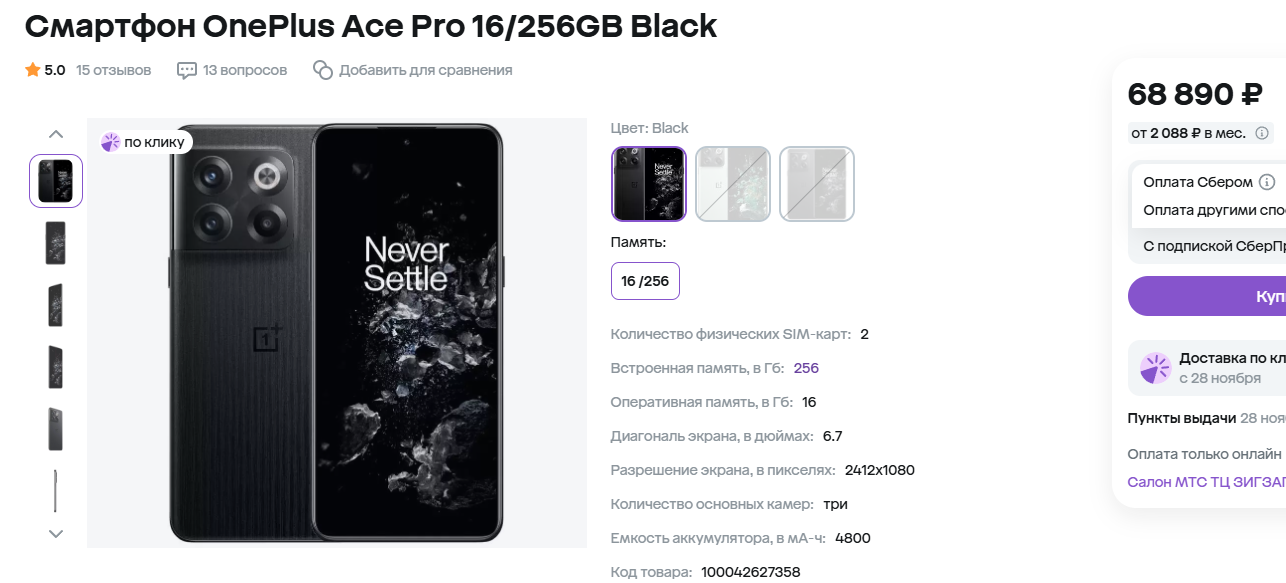 OnePlus Ace Pro. Самый дорогой аппарат в нашей подборке. Учитывайте, что это самый настоящий флагман, и это не просто слова. Устройство оснащено флагманским процессором Snapdragon8+ Gen 1, системой охлаждения для игр, быстрой зарядкой на 150 Вт. Обладает интересным дизайном и идеально подходит для тех, кто ценит мощность, скорость и готов заплатить немного больше денег за все эти и другие возможности.