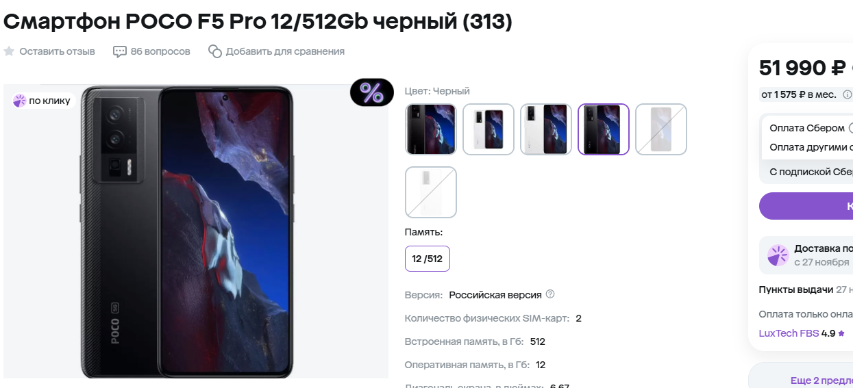 Poco F5 Pro. Этот аппарат привлекает своей мощностью и долгим временем работы. Игры, приложения, стриминг и многое другое даётся телефону легко и просто. AMOLED-экран с поддержкой HDR делает картинку насыщенной и живой, а батарея обеспечит долгую автономность. Здесь установлен процессор Snapdragon 8+ Gen 1, ну а дисплей выдаёт сочную картинку с поддержкой 120 Гц. Понравится тем, кто ценит отличное соотношение цены и характеристик.
