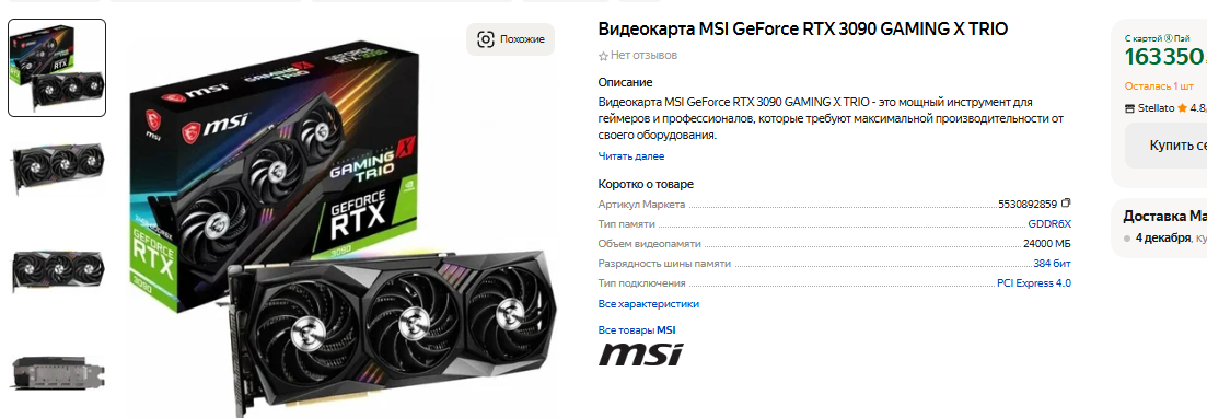 А теперь посмотрим, сколько мощные видеокарты стоят в рознице. Найти GeForce RTX 3090 Ti нам не удалось, поэтому остановимся на GeForce RTX 3090. Она ещё на 10% медленнее, а в целом между флагманами наблюдается до 60% разрыва. Стоит флагман прошлого поколения 160 тысяч рублей, ну а его покупка выглядит неоправданной. Флагман пусть и неплохо справляется с играми, но сильно отстаёт от GeForce RTX 4090. Обычно дорогие видеокарты покупают люди, у которых нет финансовых проблем, а значит экономить половину суммы, но получить компромиссное решение, захотят немногие. Выпуск обеих видеокарт уже остановлен, поэтому со временем встретить GeForce RTX 4090 в рознице станет сложно.
