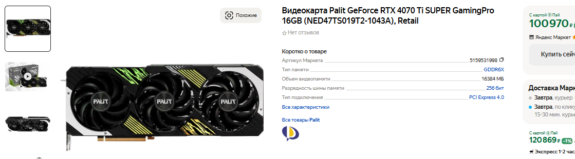Встречаются фанаты NVIDIA, которые не могут себе позволить купить видеокарту за 300 тысяч рублей. Что же, в продаже есть GeForce RTX 4070 Ti SUPER, которая по уровню быстродействия примерно равна GeForce RTX 3090 Ti. Видеокарта предлагает 16 Гб видеопамяти, неплохо показывает себя в трассировке лучей и после включения технологии масштабирования может покорять любые игры в 4K@60 fps. За GeForce RTX 4070 Ti SUPER просят всего 100 тысяч рублей, а между прочим она всего на 40-50% уступает лидеру рынка. Если обратиться к статистике Steam, то можно сделать вывод, что субфлагманы не пользуются высоким спросом, но в данном случае нам важны другие детали. Видеокарта выгодная, а наличие внушительной производительности позволяет сэкономить целых 200 тысяч рублей, пойдя на компромисс с настройками графики.