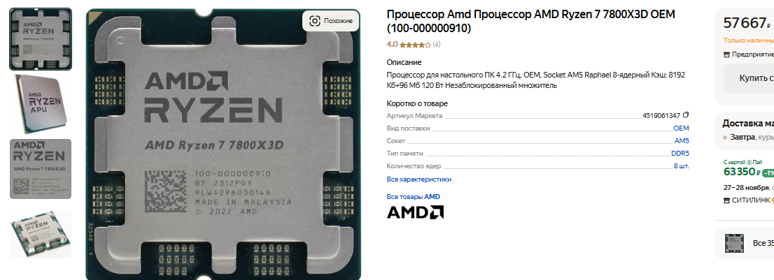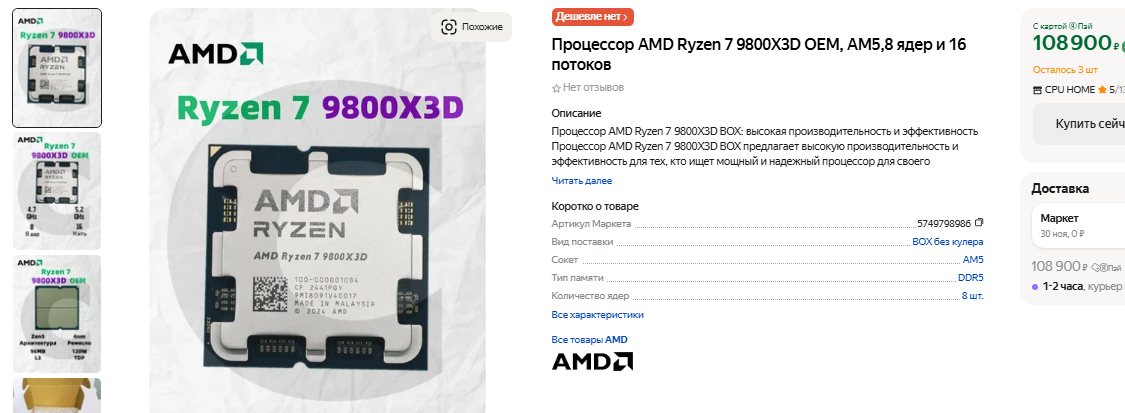 Помните, что ни один быстрый компьютер не обходится без мощного процессора. Автор теста использовал Ryzen 7 7800X3D. Стоит такой камень недёшево, но не является самым скоростным на игровом рынке. Не так давно AMD выпустила Ryzen 7 9800X3D, ну а это настоящим монстр. Инсайдеры пишут, что спрос на новый флагман настолько велик, что цены поднялись выше рекомендованных даже в США. Во многих магазинах Ryzen 7 9800X3D нет в наличии, ну а мы видим, что количество энтузиастов увеличивается. К такому процессору идеально подойдёт GeForce RTX 4090, но уже совсем скоро в продажу поступит GeForce RTX 5090. Можно предположить, что она прибавит те же 50%, ну а это станет сигналом для сотен тысяч геймеров по всей планете. Желающих купить видеокарту за несколько тысяч долларов сегодня достаточно, а значит цены снижаться точно не будут.