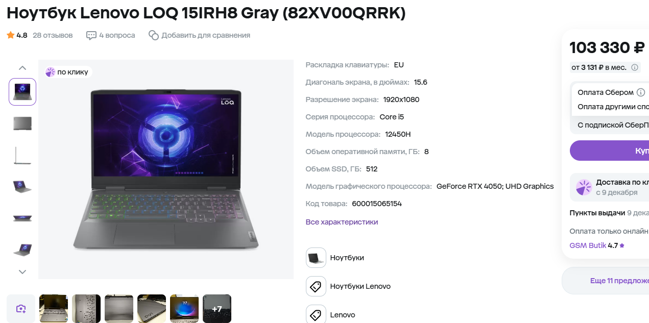 8 оптимальных игровых ноутбуков с видеокартой GeForce RTX 4050, доступных со скидками на Мегамаркете