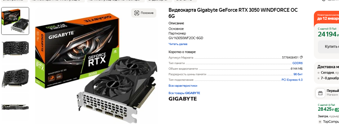 Не радуют ценами флагманы прошлых лет. Например, за GeForce GTX 1080 Ti просят почти 30 тысяч рублей, а это дороже, чем стоит новая GeForce RTX 3050. Вполне возможно, что GeForce GTX 1080 Ti годами копала криптовалюту в шахте, где подвергалась высоким температурам и в целом провела сложную и насыщенную жизнь. Потенциал такой видеокарты может быть уже израсходован, поэтому покупка её таит неприятные сюрпризы. GeForce GTX 1080 Ti быстрее GeForce RTX 3050, но она также не имеет поддержки технологии масштабирования DLSS. Статистика показывает, что FSR встречается в меньшем количестве игр, поэтому кажущаяся более скоростной GeForce GTX 1080 Ti может в итоге оказаться медленнее за счёт отсутствия поддержки официальной технологии NVIDIA. Radeon RX 5700 ХТ поддерживает FSR из коробки, а с виду кажется, что перед нами совершенно новая модель. Продавец даёт полноценную гарантию сроком на 1 год, а это самое выгодное предложение, которое только можно встретить. Radeon RX 5700 ХТ намного быстрее GeForce RTX 3050, но обычно количество акционных товаров не очень большое, а к моменту, когда вы прочтёте наш материал, выгодных предложений уже не останется.