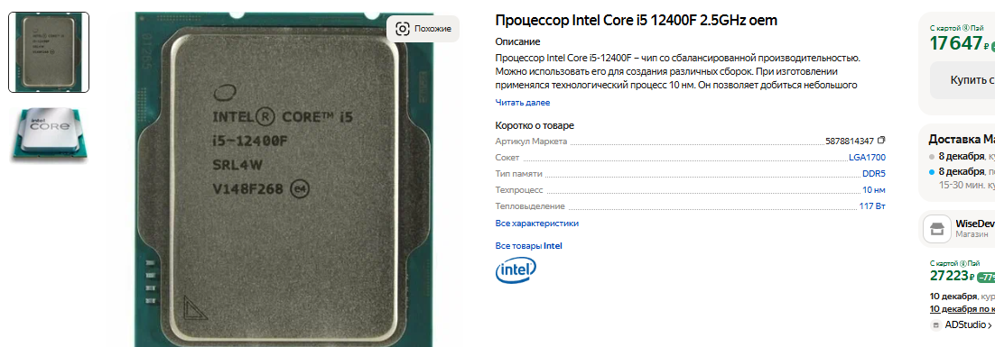 Как видите, за Core i5-12400F просят почти 18 тысяч рублей. Это довольно старый процессор Intel, который всё ещё справляется со своими задачами и решительно не подходит для прокачанной сборки. На самом деле выбор его вызывает вопросы, поскольку Ryzen 5 5600 намного дешевле. Процессор AMD предлагает аналогичную производительность, но может понравиться тем, кто думает об апгрейде старого компьютера. Допустим, у вас стоит системный блок, где уже много лет трудится Ryzen 5 1600. Поскольку между процессорами существует обратная совместимость, вы можете не менять материнскую плату, что позволит повысить производительность компьютера без переплат. Core i5-12400F так не может, а в целом процессоры Intel не подходят для апгрейда, поскольку сокет здесь меняется каждые два года. Для сравнения, у AMD сокет АМ4 оставался в строю больше семи лет.